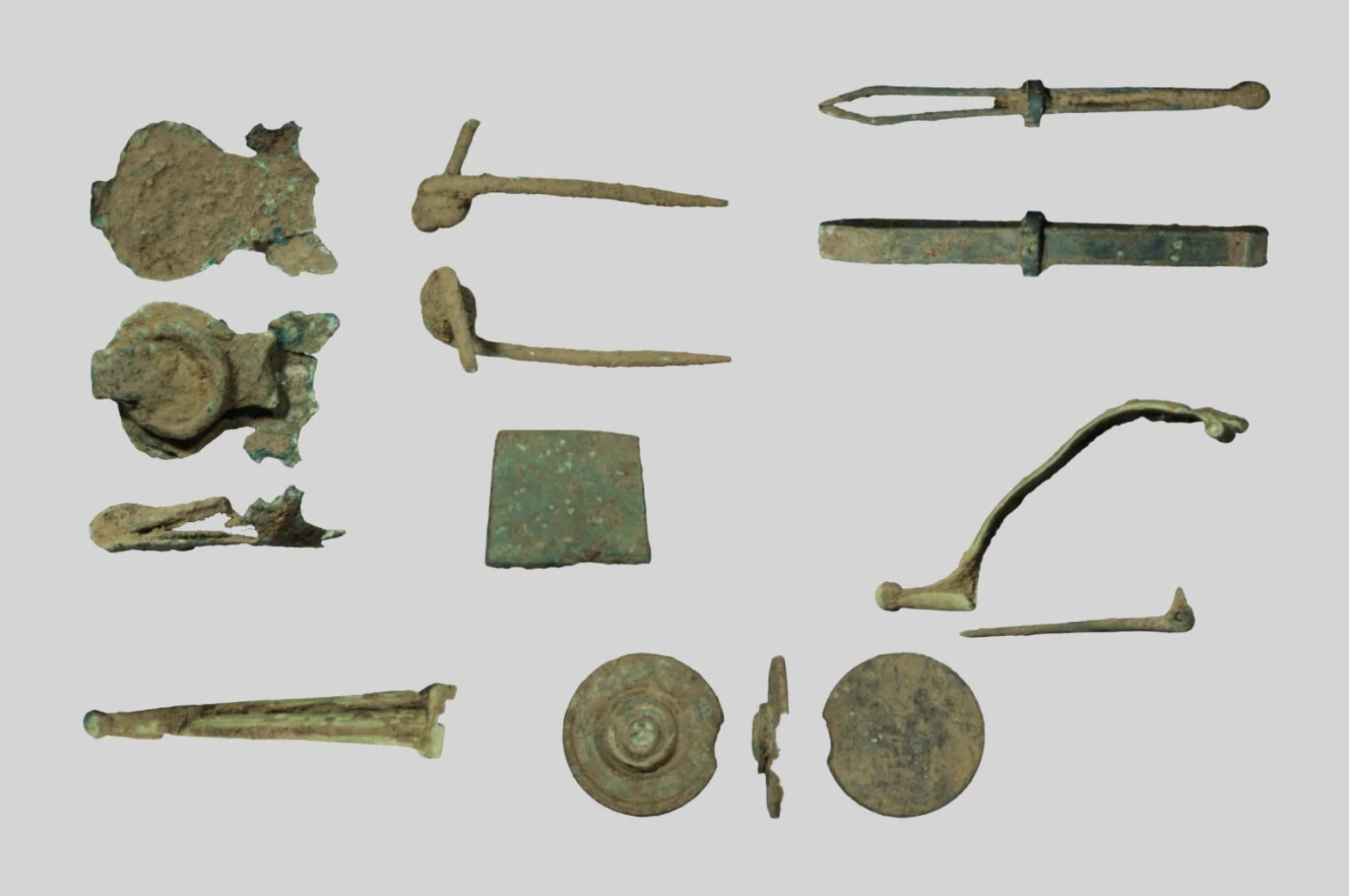 Although fewer in number, the metal objects are equally telling. One notable discovery is an Aucissa-type fibula, a brooch commonly worn by Roman soldiers, alongside four bronze coins. These coins were minted in cities such as Caesaraugusta, Osca, Bilbilis, and Emerita Augusta.